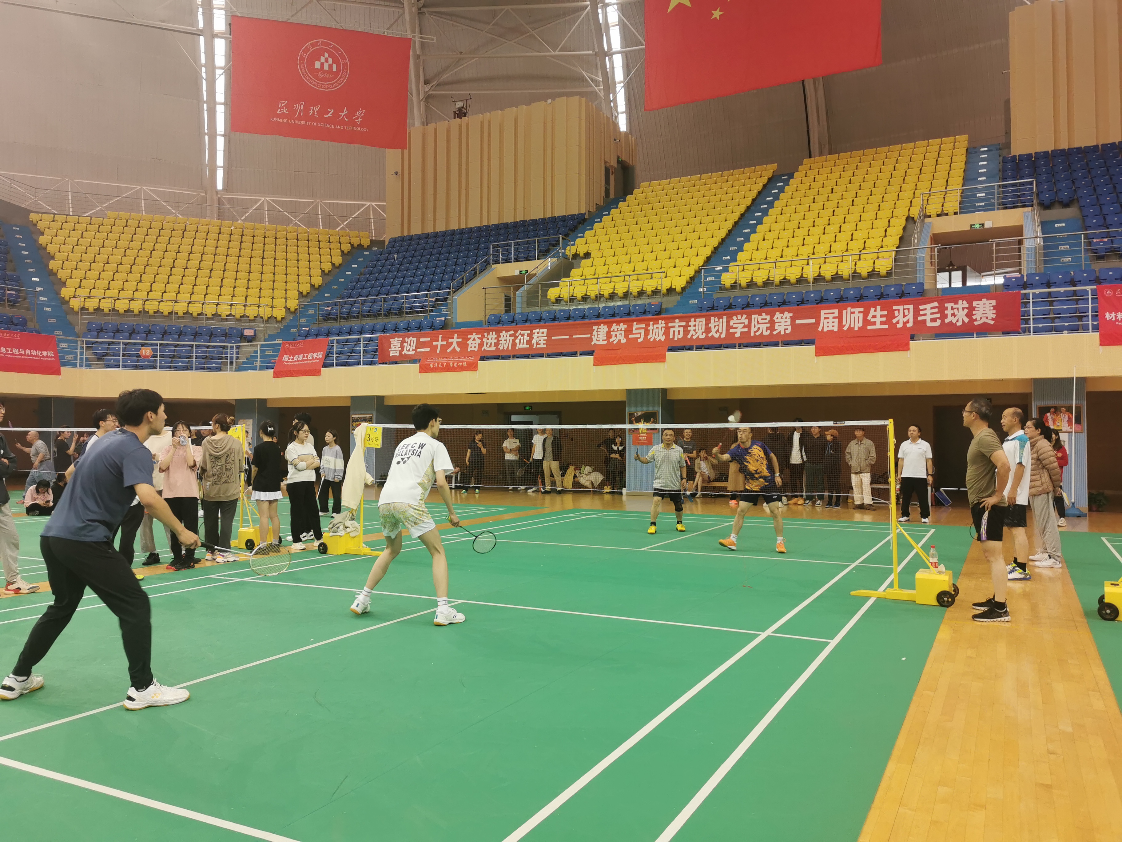 第一届师生羽毛球赛”。教工3个队,本科生8个队和研究生3个队,共14个队,学院教职工、本科生、硕博士研究生共计80多人参赛。