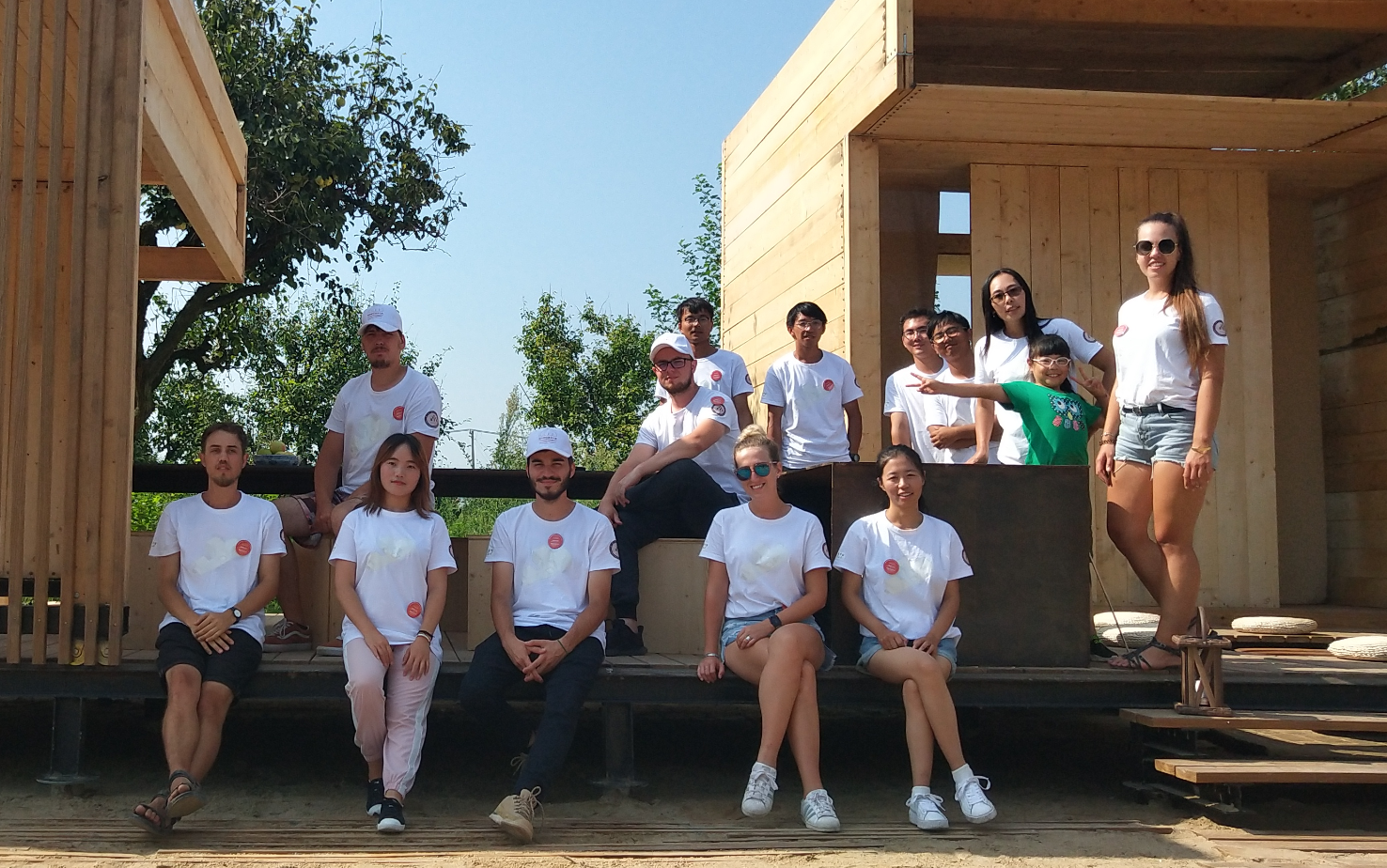 由黎南、谭良斌两位老师带队,郑友宇、张云松、杨皓、陈立鑫、卢明春、彭桂莲、曾增志、褚睿、景子健、李涵宇等10位同学参加,与斯洛伐克技术大学由Matthias Marcel Jean Arnould(斯洛伐克技术大学建筑系博士生)带队,Robert Provaznik、Jakub Hanzl、Michal Mar?ák、Juliana Tafernerová、Romana Vojtková等5位同学参加,共同组成的联合团队建造作品“方间梨楔”以第一名的成绩获得一等奖。在前三届的建造大赛中,色花堂