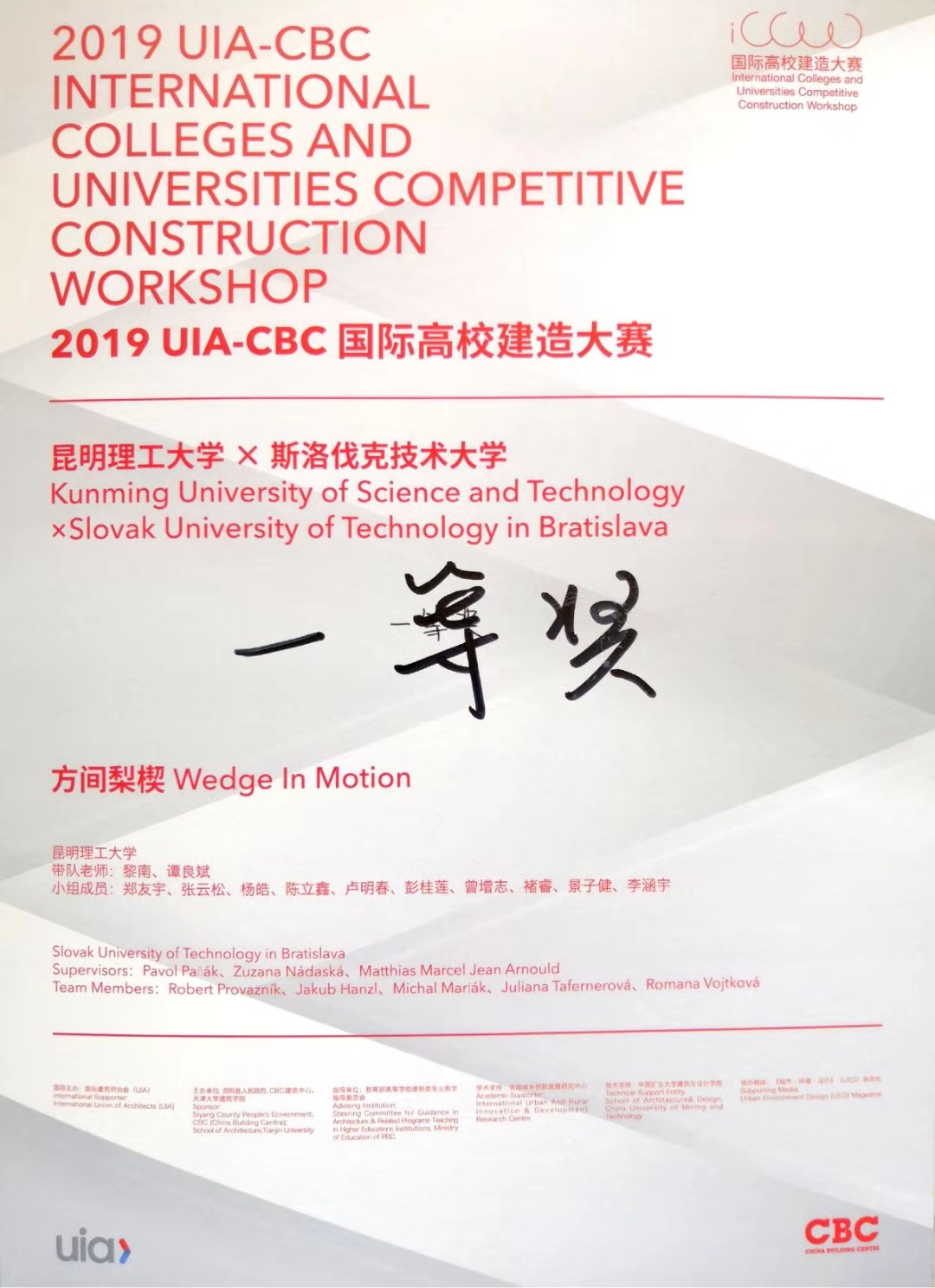 2019年8月18日,“2019UIA-CBC国际高校建造大赛”圆满闭营,本次国际高校建造大赛由国际建筑师协会(UIA)作为国际主办方,泗阳县人民政府、CBC建筑中心、天津大学建筑学院主办,教育部高等学校建筑类专业教学指导委员会作为指导单位,全球城乡创新发展研究中心作为学术支持,中国矿业大学建筑与设计学院作为技术支持单位,是目前中国唯一一个获得UIA官方认可与支持的建造类竞赛,也是目前规模最大、级别最高的国际建造竞赛之一。