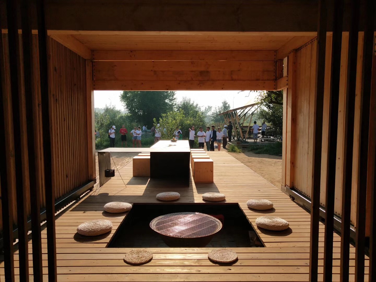 昆明理工大学和斯洛伐克技术大学联合团队的作品“方间梨楔”,以“行到水穷处,坐看云起时”的纯粹生活理念为灵感,回归极简的空间操作手法,在梨园一隅置入极简生活体验装置。该设计以“简洁实用”为基本原则,通过变换建筑的空间组合形式,满足使用空间的可变性和使用功能的兼容性。并希望通过简洁的建筑结构与自然光线的微妙关系,寻找建筑与自然环境相映成趣的设计快乐。该建造作品在解读百年梨园的全新生活方式的同时,为探索乡村生活模式多元化创造无限可能,获得了评审团的一直好评。
