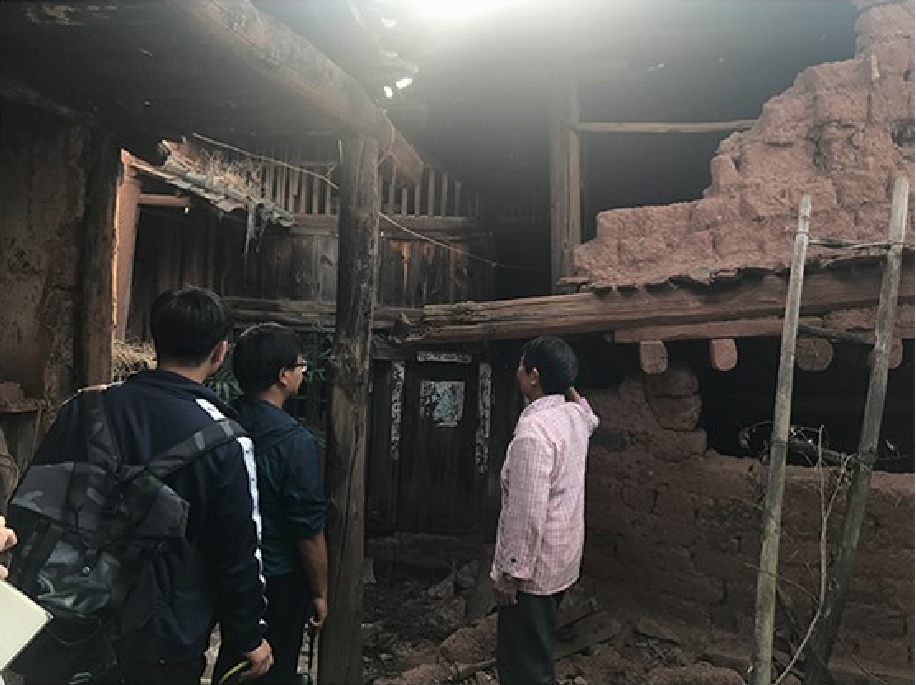 7月12日,实践团队抵达大摆衣村落,了解整个村落现状并研究当地传统民居及其历史文化。并且依次走访了参与活动的农户家,结合调查问卷询问具体农户对住宅的需求。同时,团队也与乡政府积极沟通,争取更多的政府扶持。