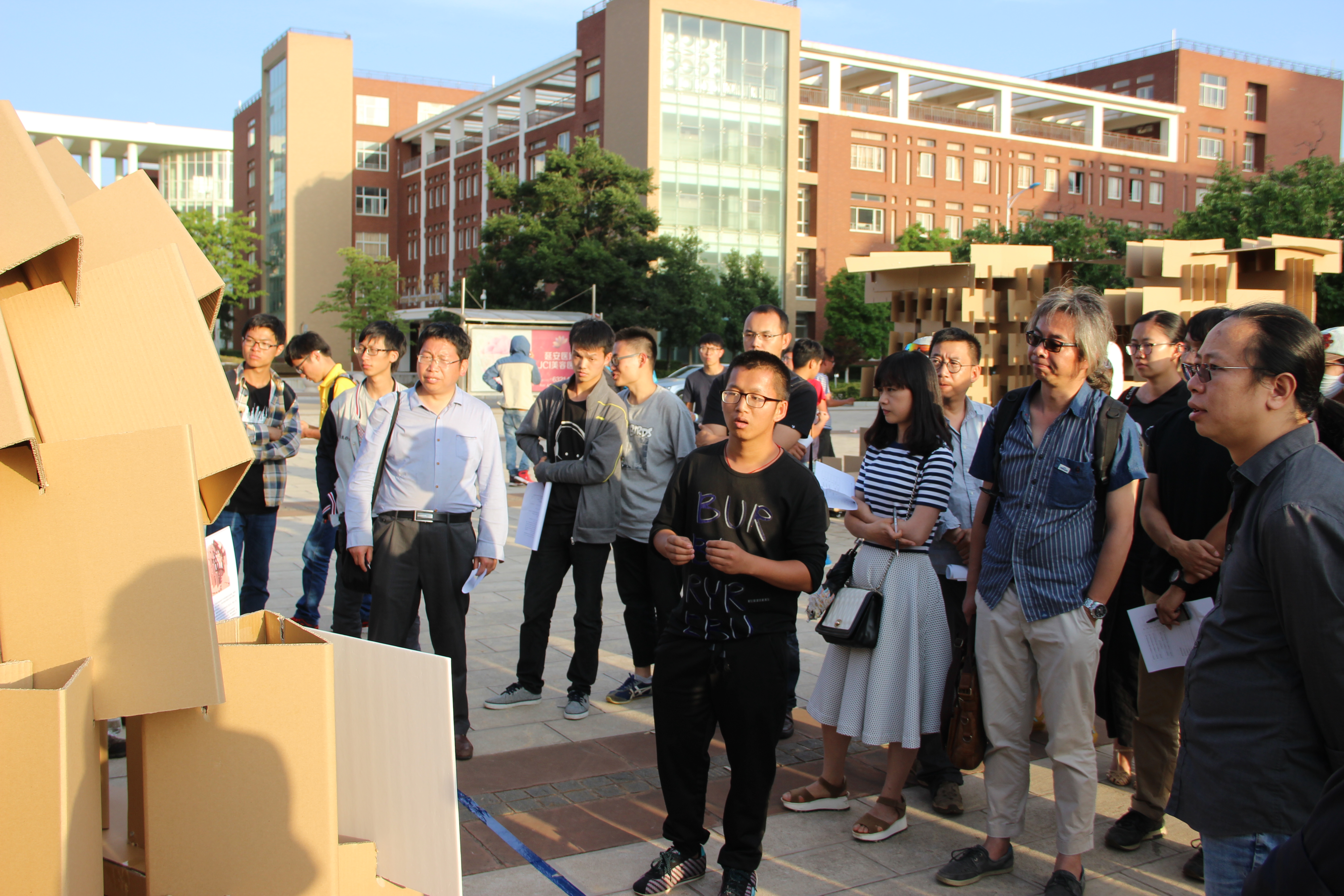 开幕式结束后,各高校参赛小组进入了紧张的建造环节。经过同学们27小时辛苦、紧张的建造,23栋风格迥异的纸板建筑矗立在学院广场上,28下午评委团对每一栋纸板建筑进行评审。经评委团对各纸板建筑在结构、空间和形态等方面的综合考量,评出了本届建造节的各个奖项。获得一等奖的是昆明理工大学城市学院艺术设计系代表队,获得二等奖的是西南林业大学代表队、昆明学院代表队以及昆明理工大学津桥学院代表队,获得三等奖的是昆明理工大学城市学院建筑学系代表队、昆明理工大学建筑工程学院土木系代表队、昆明理工大学艺术与传媒学院代表队、昆明理工大学色花堂