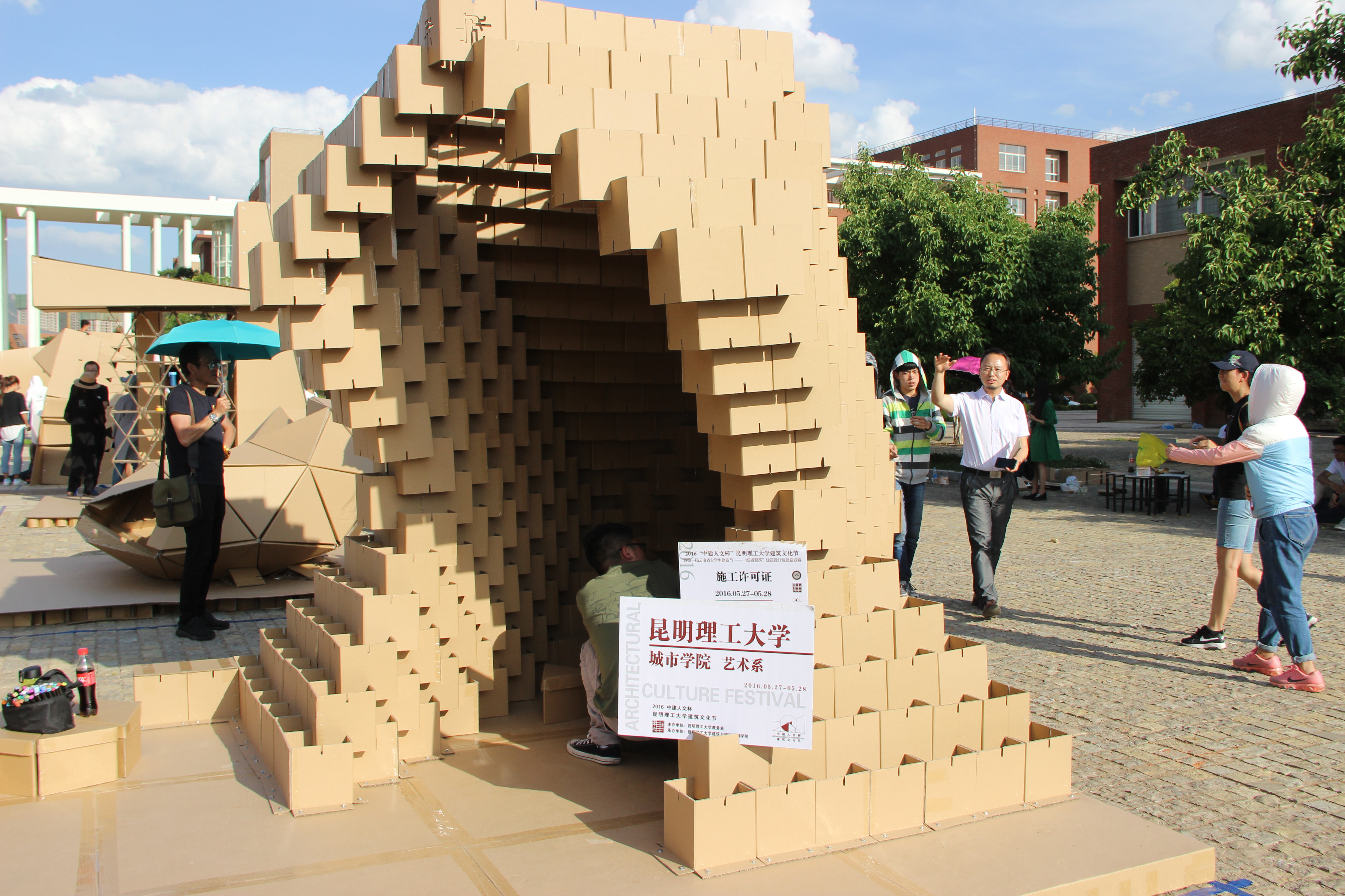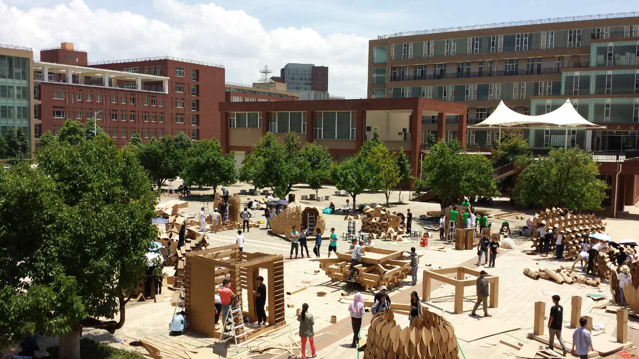 承办的“中建人文杯”2016昆明理工大学建筑文化节暨第一届云南省大学生建造节——“纸板聚落”建筑设计与建造竞赛于 5 月 27 日至28 日在呈贡校区建筑楼前广场举行。