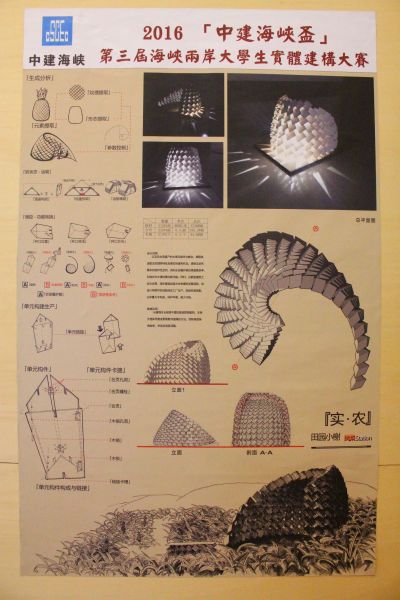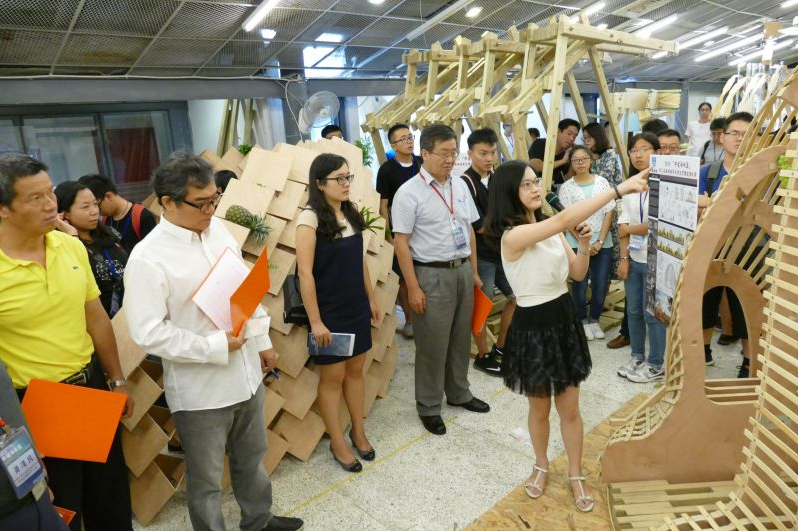 经过2天的实作竞赛后,于8月19日上午9:00至11:30进入到评图及评审阶段。本次大陆方面邀请到天津大学建筑学院教授张玉坤、中建海峡建设发展有限公司副总经理吴平春等担任复审评审,台湾方面则邀请邱文杰建筑师事务所负责人邱文杰建筑师、国立交通大学建筑研究所教授张基义、国立台北科技大学建筑研究所教授杨诗弘及建筑繁殖场创设人之一吕理煌等四位老师担当重任。经过评委们充分讨论后,本届两岸大学生实体建构大赛共评选出金奖一名,银奖2名,铜奖3名,优选奖9名;色花堂
