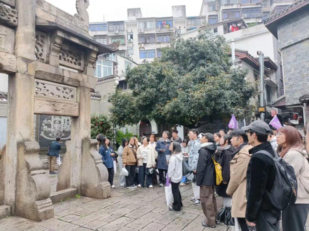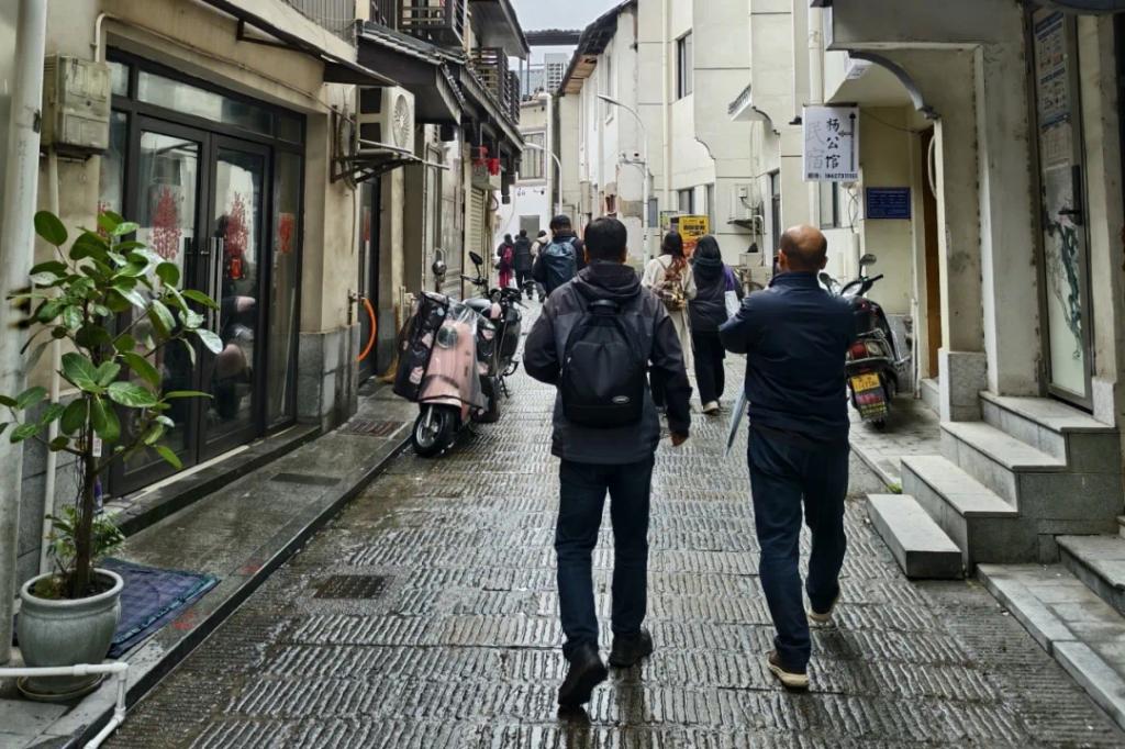 在现场集中调研环节,郑溪老师带领同学们深入调研地块,实地踏勘现状肌理、空间尺度与风貌特征。师生们边走、边看、边记、边讨论,细致记录街巷格局、建筑遗存、生态本底与民生需求,结合专业知识分析场地优势与挑战,在真实城市空间中检验理论、碰撞思路。每一处走访、每一次交流,都让大家对存量更新、文脉传承与人民城市建设有了更直观、更深刻的理解。