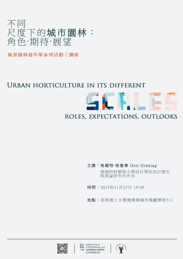 11月27日(本周五)由德国柏林艺术大学著名教授格尔特·格鲁宁教授主讲的两场讲座在建筑与规划楼举行,详情请参阅宣传海报。